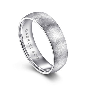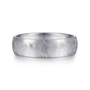 14K White Gold 6mm - Men's Wedding Band in Diamond Brush Finish