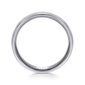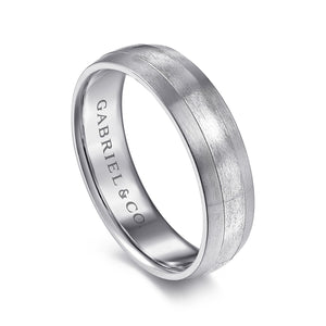 14K White Gold 6mm - Satin Color Block Men's Wedding Band in Satin Finish