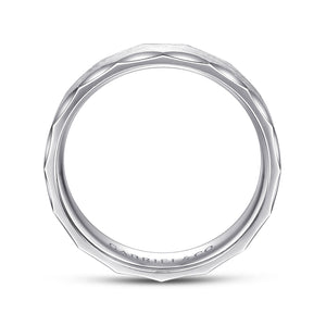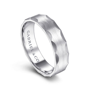 14K White Gold 6mm - Satin Grooved Edge Men's Wedding Band