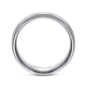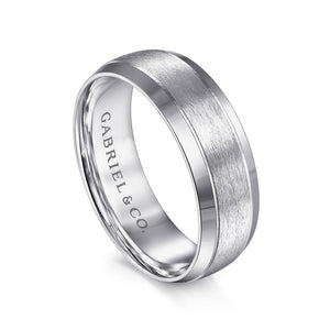 14K White Gold 7mm - Beveled Edge Men's Wedding Band in Horizontal Brush Finish