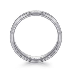 14K White Gold 7mm - Beveled Edge Men's Wedding Band in Horizontal Brush Finish