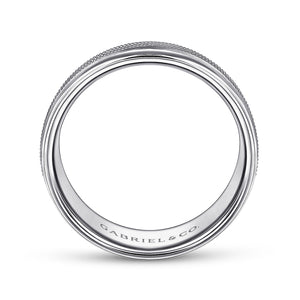 14K White Gold 7mm - Center Rope Channels and Polished Edge Men's Wedding Band in High Polished Finish