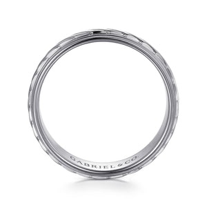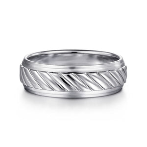 14K White Gold 7mm - Rope Center and Polished Edge Men's Wedding Band in High Polished Finish