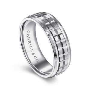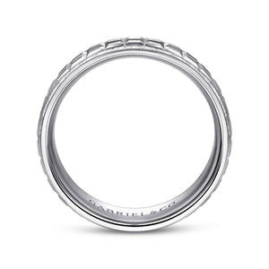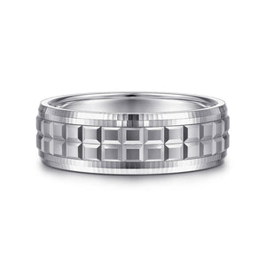 14K White Gold 7mm - Square Inlay Men's Wedding Band