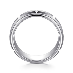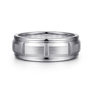 14K White Gold 8mm - Carved Station Men's Wedding Band in Satin Finish