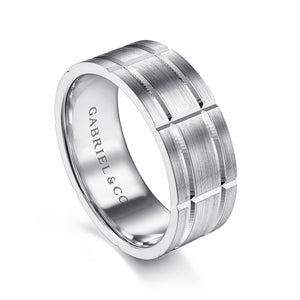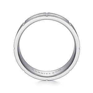 14K White Gold 8mm - Checkered Pattern Men's Wedding Band in Satin Finish