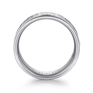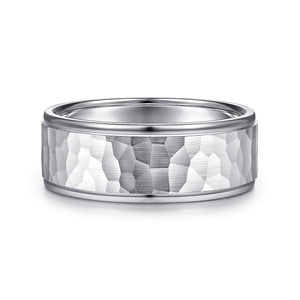 14K White Gold 8mm - Hammered Men's Wedding Band