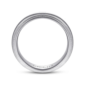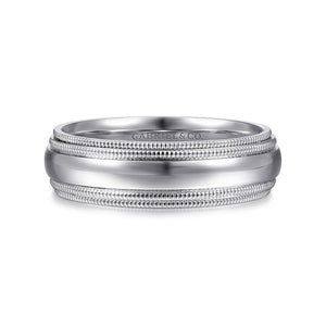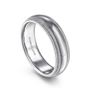 14K White Gold High Polish Men's Wedding Band with Milgrain Edge