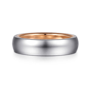 14K White-Rose Gold 6mm - Two Tone Men's Wedding Band in Sand Blast Finish
