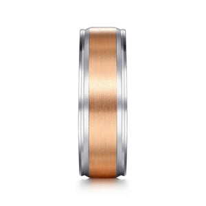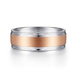 14K White-Rose Gold 7mm - Men's Wedding Band in Satin Finish