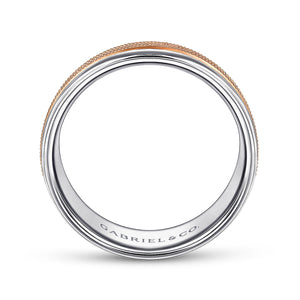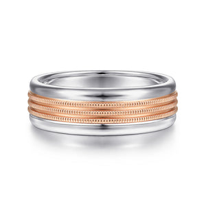 14K White-Rose Gold 7mm - Two Tone Men's Wedding Band in High Polished Finish
