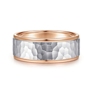 14K White-Rose Gold 8mm - Hammered Men's Wedding Band