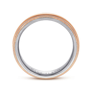 14K White-Rose Gold High Polish Men's Wedding Band with Milgrain Edge