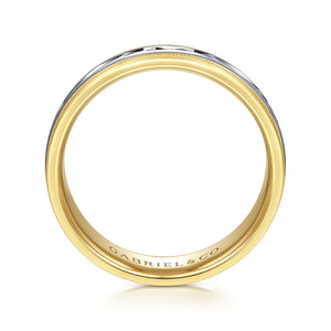 14K White-Yellow 6mm - Engraved Men's Wedding Band in Satin Finish