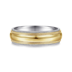 14K White-Yellow Gold High Polish Men's Wedding Band with Milgrain Edge