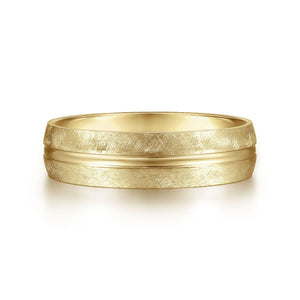 14K Yellow Gold 6mm - Brushed Diamond Cut Men's Wedding Band