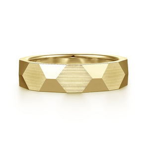 14K Yellow Gold 6mm - Carved Men's Wedding Band in Satin Finish