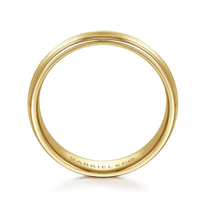 14K Yellow Gold 6mm - Carved Men's Wedding Band in Satin Finish