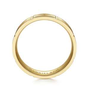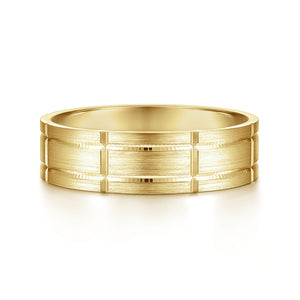 14K Yellow Gold 6mm - Checkerboard Pattern Men's Wedding Band in Satin Finish