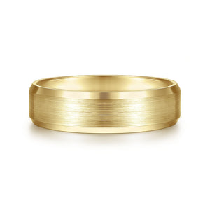 14K Yellow Gold 6mm - Satin Finish Men's Wedding Band with Beveled Edge