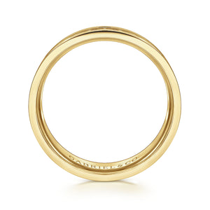 14K Yellow Gold 7mm - Diamond Cut Center Men's Wedding Band in Satin Finish