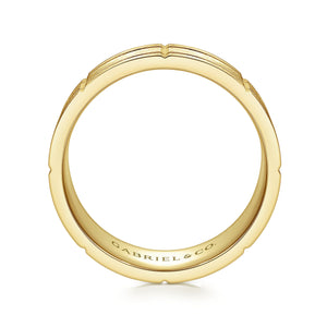 14K Yellow Gold 8mm - Checkered Pattern Men's Wedding Band in Satin Finish