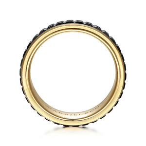 14K Yellow Gold-Black Ceramic 7mm - Two Tone Beveled Edge Men's Wedding Band