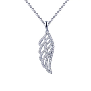 Simple yet stylish. This angel wing pendant is set with Lafonn's signature Lassaire simulated diamonds in sterling silver bonded with platinum. The pendant comes on an adjustable 18" chain.