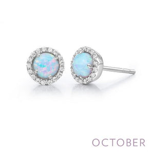 October - Opal. Adorn yourself with Lafonn's birthstone jewelry. These halo stud earrings are set with simulated opals surrounded by Lafonn's signature Lassaire simulated diamonds in sterling silver bonded with platinum.