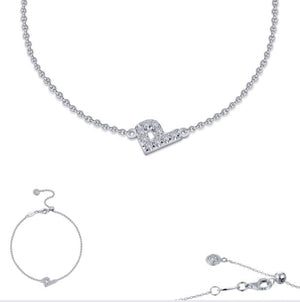 Delicate and sweet. This sideway, adjustable, and stackable designer letter "P" bracelet is set with Lafonn's signature Lassaire clear simulated diamonds in sterling silver bonded with platinum.