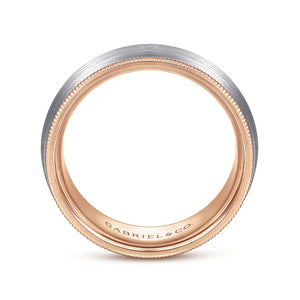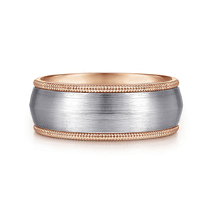 14K White-Rose Gold 8mm - Two Tone Men's Wedding Band in Satin Finish